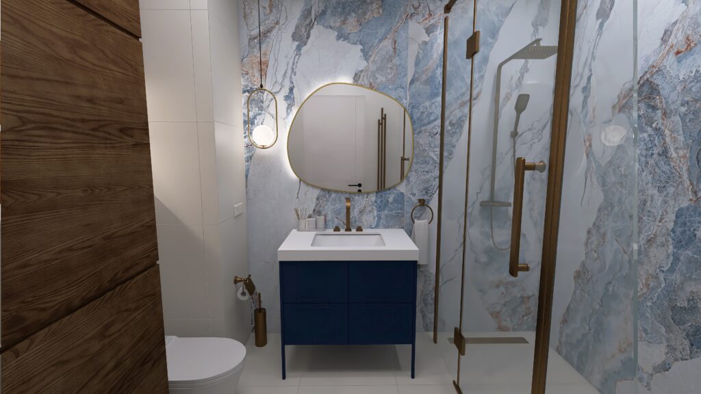 Umywalki i blat z marmuru stają się codziennym miejscem spotkania z własnym odbiciem – elegancja i trwałość materiału sprawiają, że nawet chwila mycia rąk czy wieczornego demakijażu nabiera wyjątkowego charakteru.