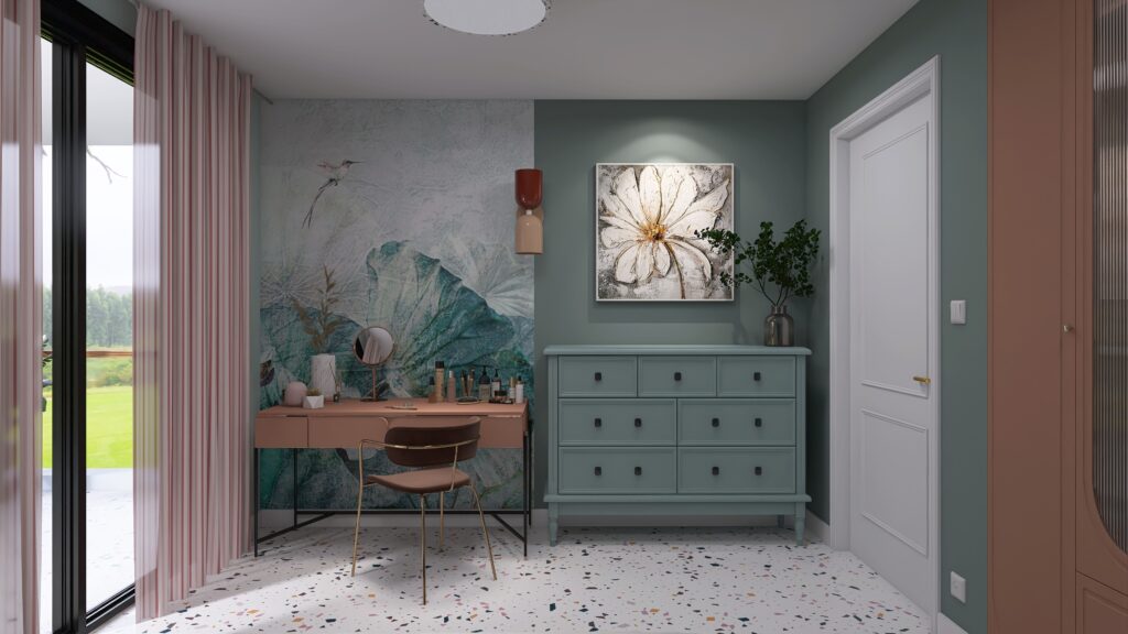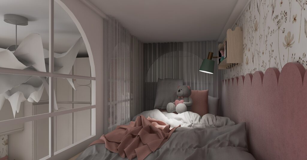 Każdy projekt zaczynam od poznania potrzeb przyszłego mieszkańca. Tym razem stworzyłam przestrzeń dla już za niedługo nastoletniej dziewczynki-artystki, która uwielbia tworzyć i dzielić się pasją z przyjaciółmi.